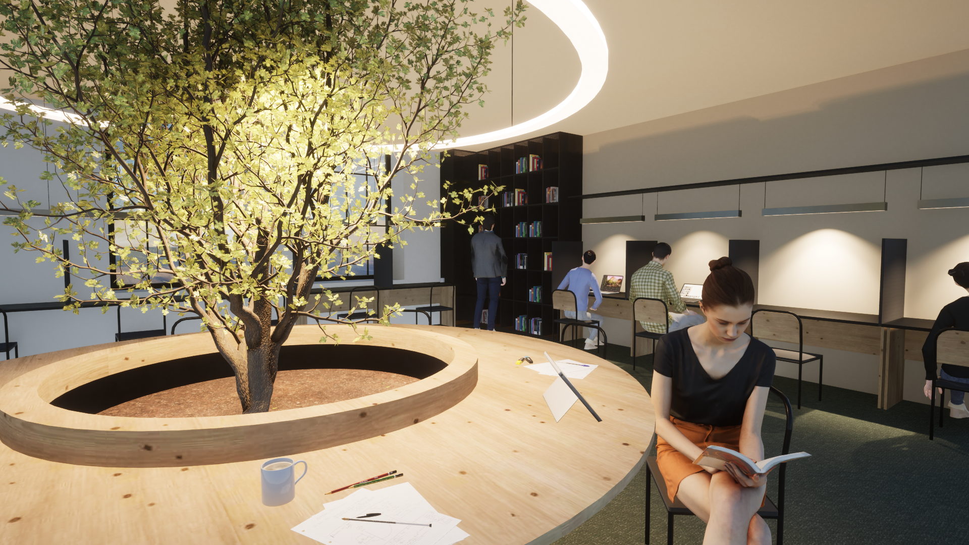 Lokmotivverkstedet står i dag tomt og har bruk for rehabilitering. Jeg skal i denne oppgaven løse rehabilitering av bygget ved å fokusere på bærekraft, funn gjort gjennom observasjon, research og kreative metoder for å skape et samlingspunkt mellom demente og studenter.